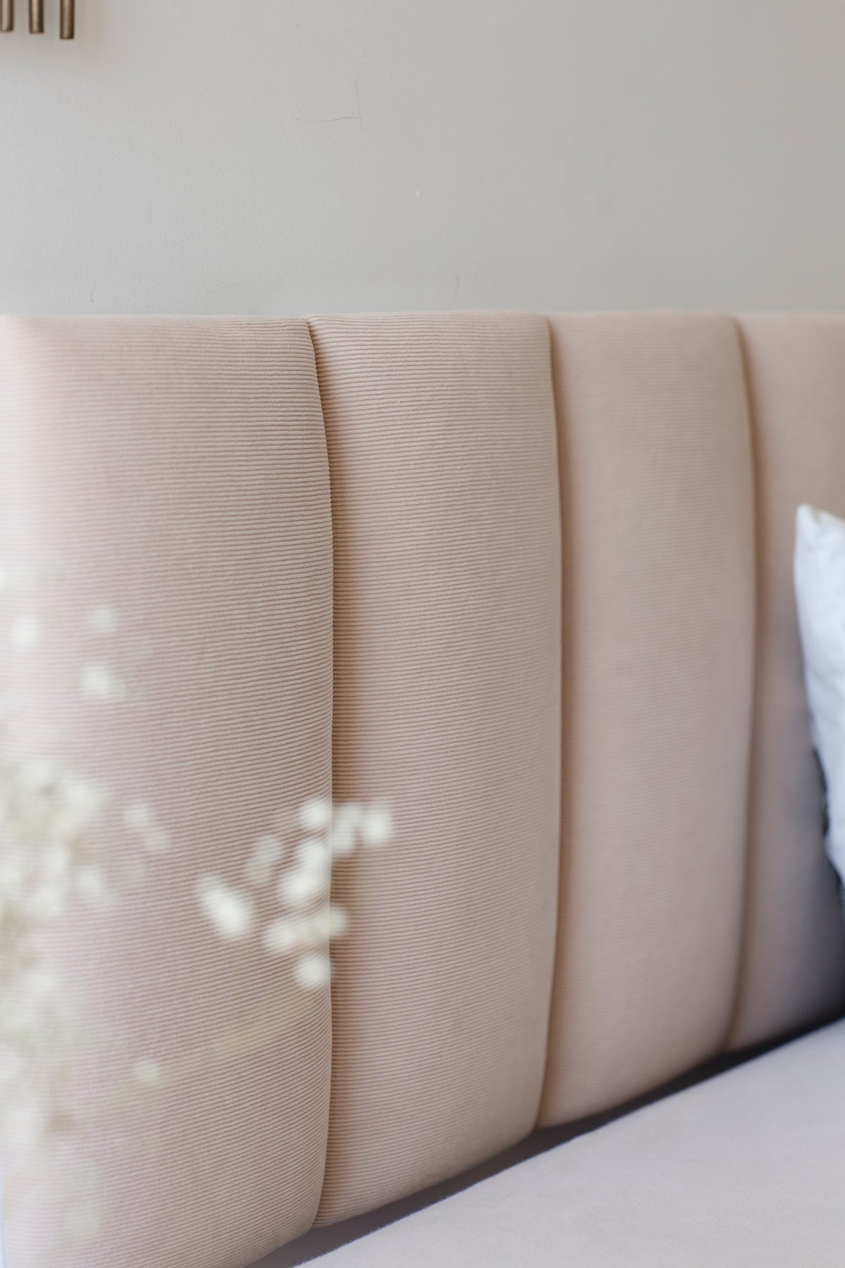 ראש מיטה מבד קורדרוי בצבע אוף וויט – בד נעים עם טקסטורת פסים עדינה.