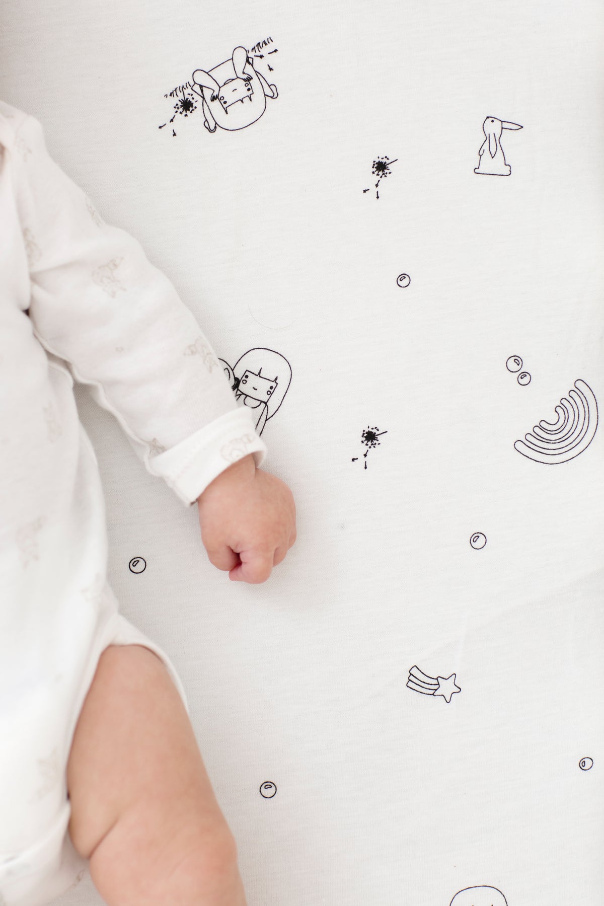 סט עריסה – לבן עם איורים שחורים של "ילדת טבע"